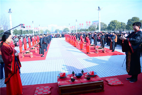 記者在現(xiàn)場看到,16對新人在司儀的引導(dǎo)下,采用中國古典婚禮儀式,有牽紅線、結(jié)發(fā)、拜天地等程序,儀式簡單而隆重,新人家屬、1000多名市民圍觀見證了新人喜結(jié)連理。