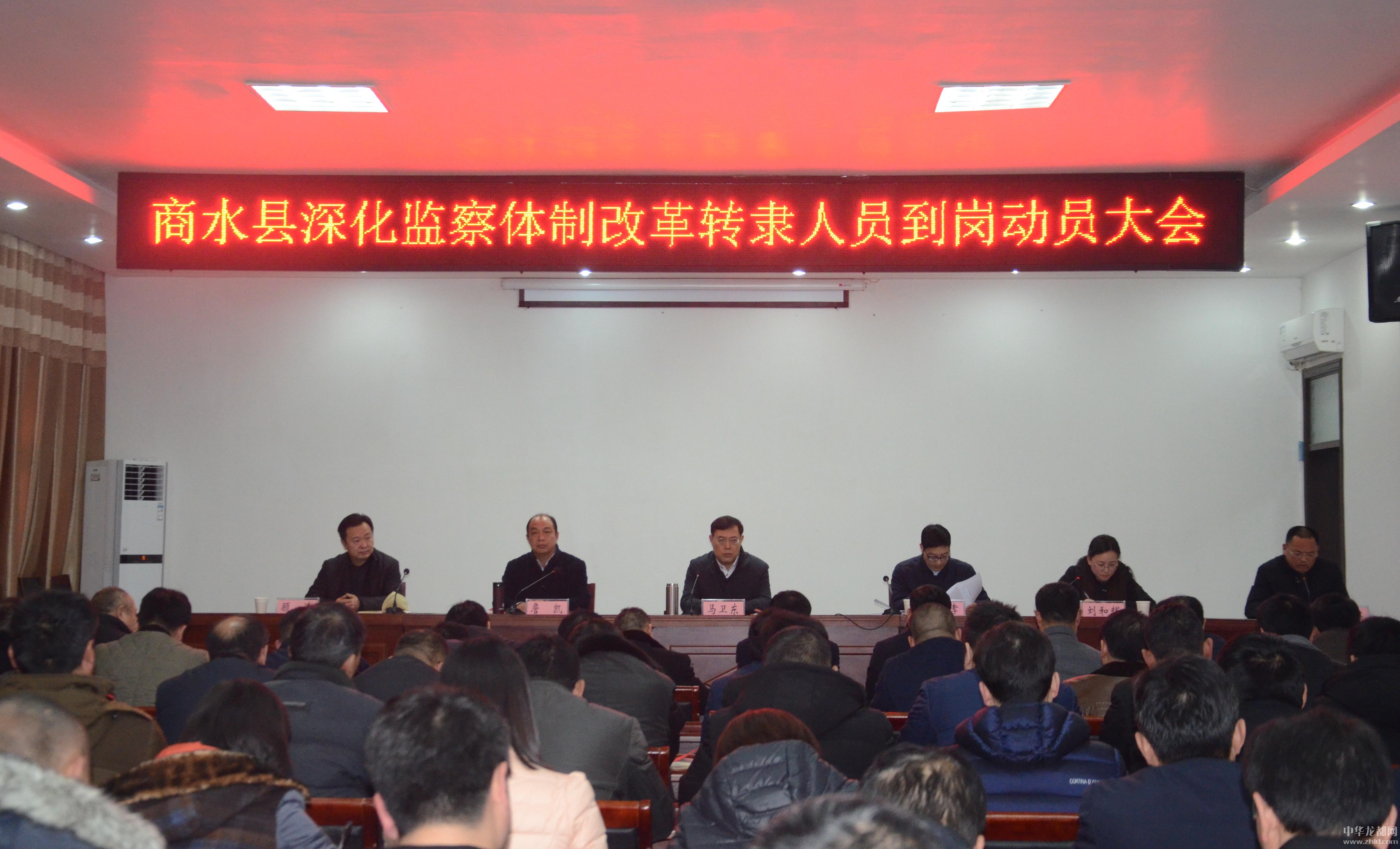 中華龍都訊 (周口報業(yè)全媒體記者 付永奇 通訊員 李前進)1月17日下午,商水縣深化監(jiān)察體制改革轉(zhuǎn)隸人員到崗動員大會在縣委五樓會議室召開。市紀委常委、市監(jiān)委委員朱良孝,縣委書記馬衛(wèi)東,縣委常委、紀委書記詹凱,縣委常委、組織部長劉和輝,縣檢察院檢察長顧濤;縣紀委監(jiān)察局機關(guān)、縣委巡察機構(gòu)全體人員以及縣檢察院全體轉(zhuǎn)隸人員參加了會議。