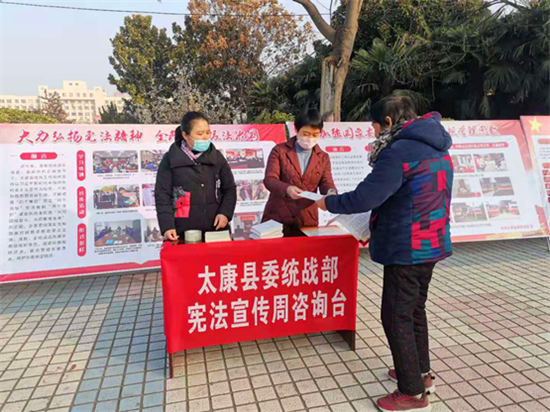 太康縣委統(tǒng)戰(zhàn)部制訂了《2020年全縣“憲法宣傳周”工作方案》,在縣人民廣場(chǎng)擺放展板,并設(shè)置咨詢臺(tái),為市民發(fā)放河南省宗教條例手冊(cè)、宗教政策宣傳頁(yè)、宗教事務(wù)條例各300份。