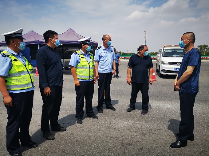 岳備戰(zhàn)一行先后到譚莊高速路口執(zhí)勤卡點、商南高速路口執(zhí)勤點看望慰問值班民輔警及防疫工作人員,并送上慰問品。在卡點,岳備戰(zhàn)詳細檢查了各項防疫工作落實情況,為在一線的防疫人員送去節(jié)日祝福及慰問品,感謝他們用實際行動詮釋擔(dān)當(dāng)精神、奉獻精神,對大家頂著烈日堅守在防疫一線,為廣大百姓的生命安全保駕護航。同時他強調(diào)大家要時刻保持臨戰(zhàn)狀態(tài),以高度的責(zé)任感,堅定的信心和有力的舉措,站好崗、履好職,扎實做好疫情防控各項工作,全力守護百姓生命健康安全。