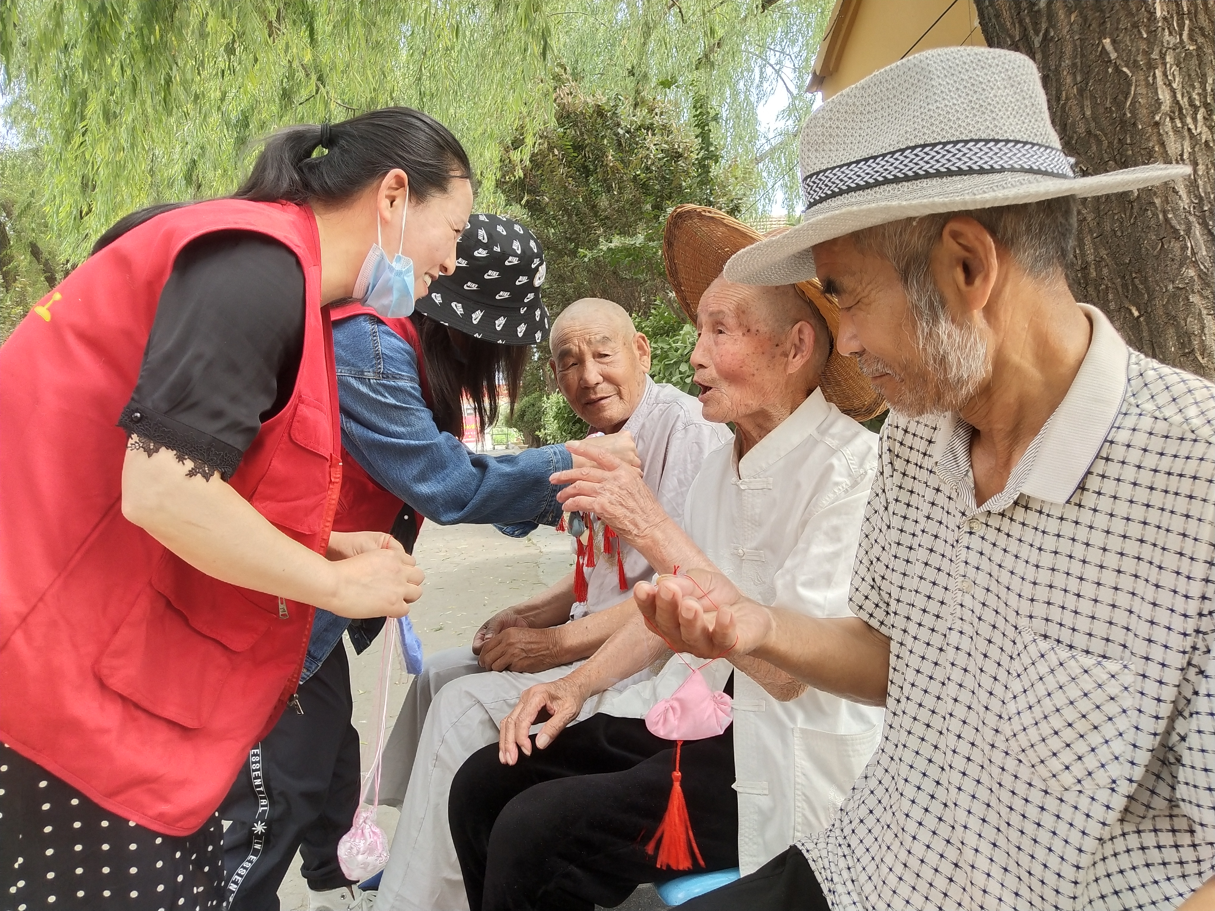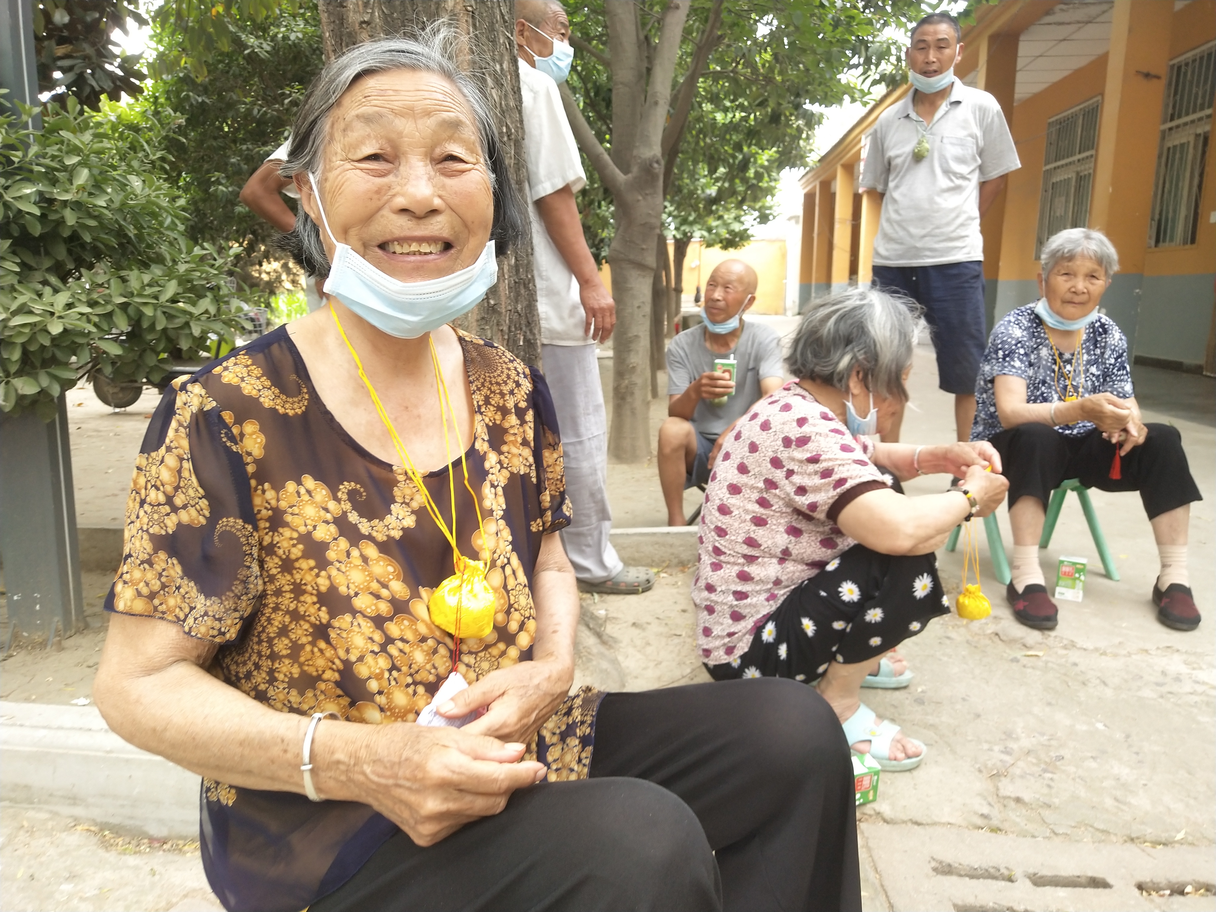 “大爺,大娘,來吃水果,我把香包給您戴上,祝您端午安康,健康長壽......”劉玉英委托的愛心志愿者戚素華、劉影、袁鳳蓮、李霞、姚君英、李艷紅、王香清等還給敬老院的老人送來了粽子、水果,和老人聊天交談、佩戴香包,老人們臉上綻開了幸福的笑容。