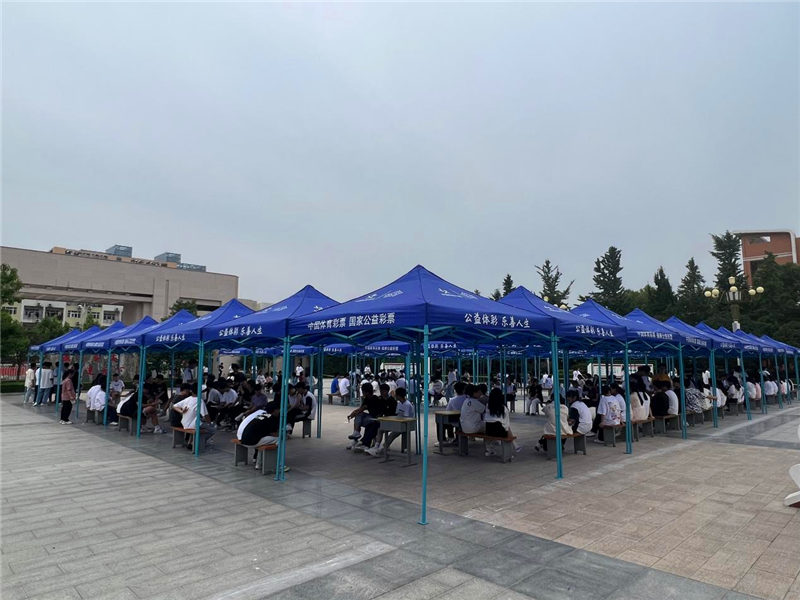 本次活動周口體彩分中心協(xié)調(diào)到40余頂帳篷,在考場外設置服務點為考生及家長提供飲用水、歇息區(qū)。結(jié)合周口市文昌中學實際情況,在考場校園內(nèi)搭設一整片體彩遮陽帳篷陰涼區(qū)域,為考生候場提供一片“清涼”。 與此同時,體彩志愿者熱情地為考生及家長提供愛心服務,送上一瓶瓶清涼的礦泉水,帶著滿滿的愛心與祝福,給莘莘學子們加油助威,讓他們切身感受到體彩人的擔當和真摯的關愛。