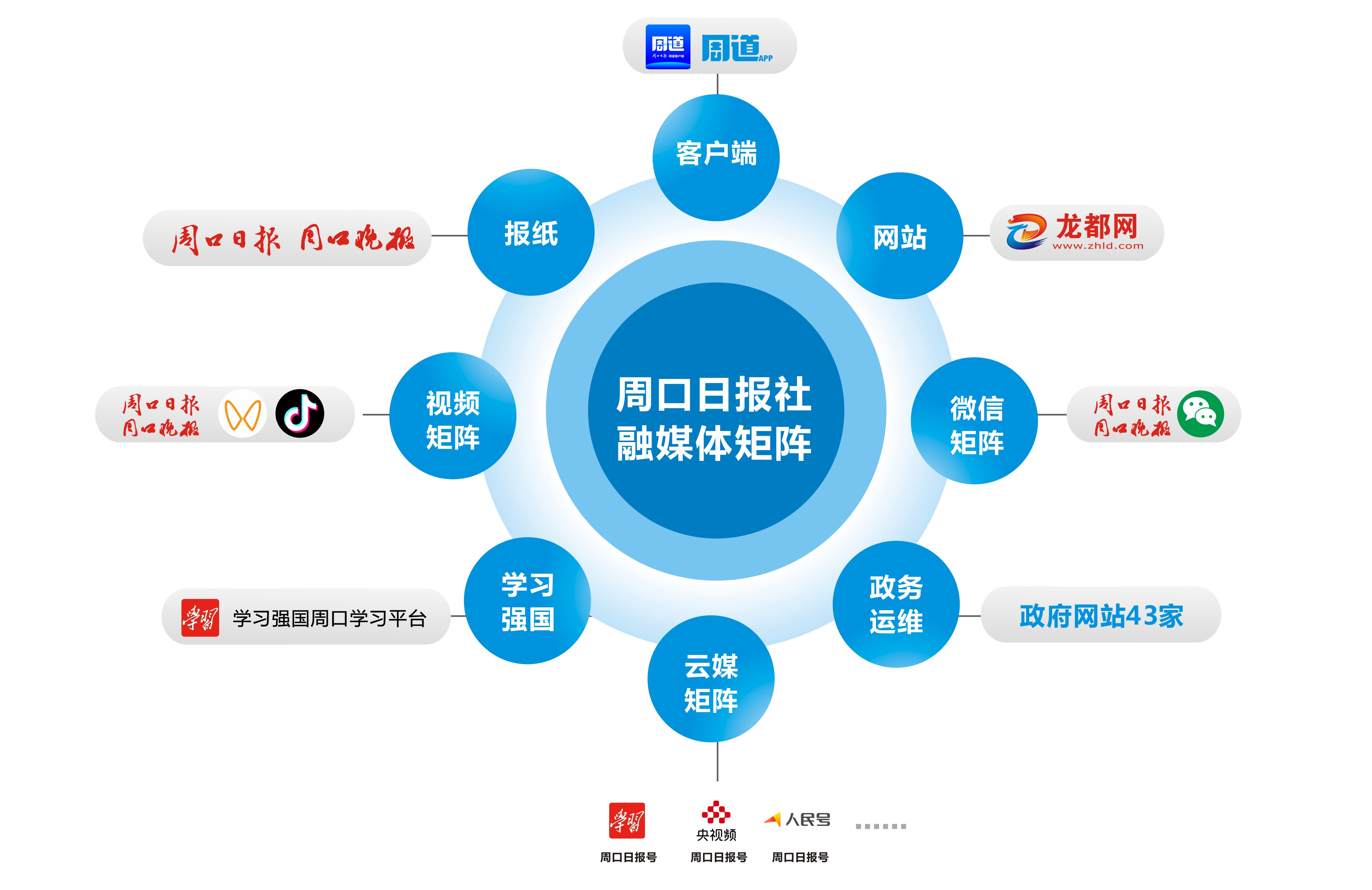 周口日?qǐng)?bào)社始終堅(jiān)持“移動(dòng)優(yōu)先 內(nèi)容為王 導(dǎo)向?yàn)榛?創(chuàng)新為要”的發(fā)展方向,從體制機(jī)制、隊(duì)伍建設(shè)、采編創(chuàng)新、服務(wù)優(yōu)先、經(jīng)營(yíng)轉(zhuǎn)型等多方面持續(xù)發(fā)力,不斷深化媒體融合發(fā)展。已形成涵蓋《周口日?qǐng)?bào)》,《周口晚報(bào)》,龍都網(wǎng),周道客戶(hù)端,官方微信號(hào)、微博號(hào)、視頻號(hào)、抖音號(hào),學(xué)習(xí)強(qiáng)國(guó)周口學(xué)習(xí)平臺(tái)、政務(wù)運(yùn)維等12大門(mén)類(lèi)18個(gè)主體的立體傳播矩陣,托管運(yùn)維政府網(wǎng)站43家,用戶(hù)總數(shù)逾千萬(wàn)。對(duì)外宣傳上,周口日?qǐng)?bào)社還在學(xué)習(xí)強(qiáng)國(guó)客戶(hù)端、人民日?qǐng)?bào)客戶(hù)端、央視頻客戶(hù)端等多個(gè)第三方平臺(tái)開(kāi)設(shè)周口日?qǐng)?bào)號(hào),組成網(wǎng)絡(luò)云媒矩陣,形成了全方位、立體化、多角度展示周口形象的全媒體傳播新格局。