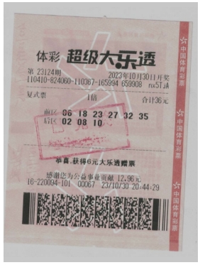 10月30日,體彩大樂透第23124期開獎。當期開獎號碼為前區(qū):06、18、23、27、32,后區(qū):06、10。位于周口市西華縣4116220094體彩實體店傳出喜訊,購彩者馬先生喜中大樂透二等獎,斬獲獎金9.6萬元?!?a href="http://xinhuasj.com.cn/content/2023-11/20/content_1036092.html" target="_blank" >[詳細]
