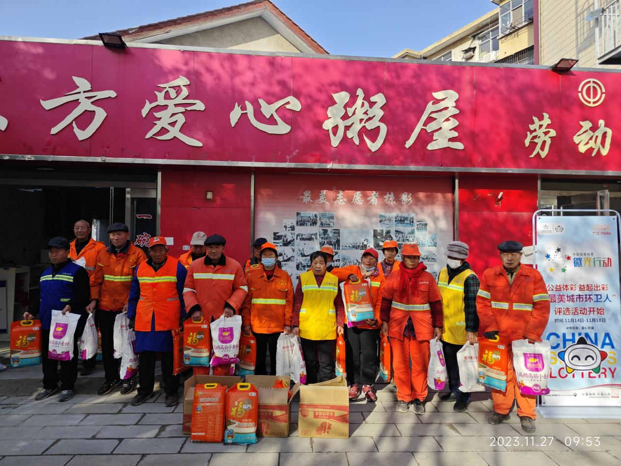 11月27日,周口體彩分中心工作人員攜帶米、面等物資來到“東方愛心粥屋”開展“公益體彩 益起出彩”致敬“城市最美環(huán)衛(wèi)人”活動公益活動,對20名“城市最美環(huán)衛(wèi)人”開展捐助。……[詳細]