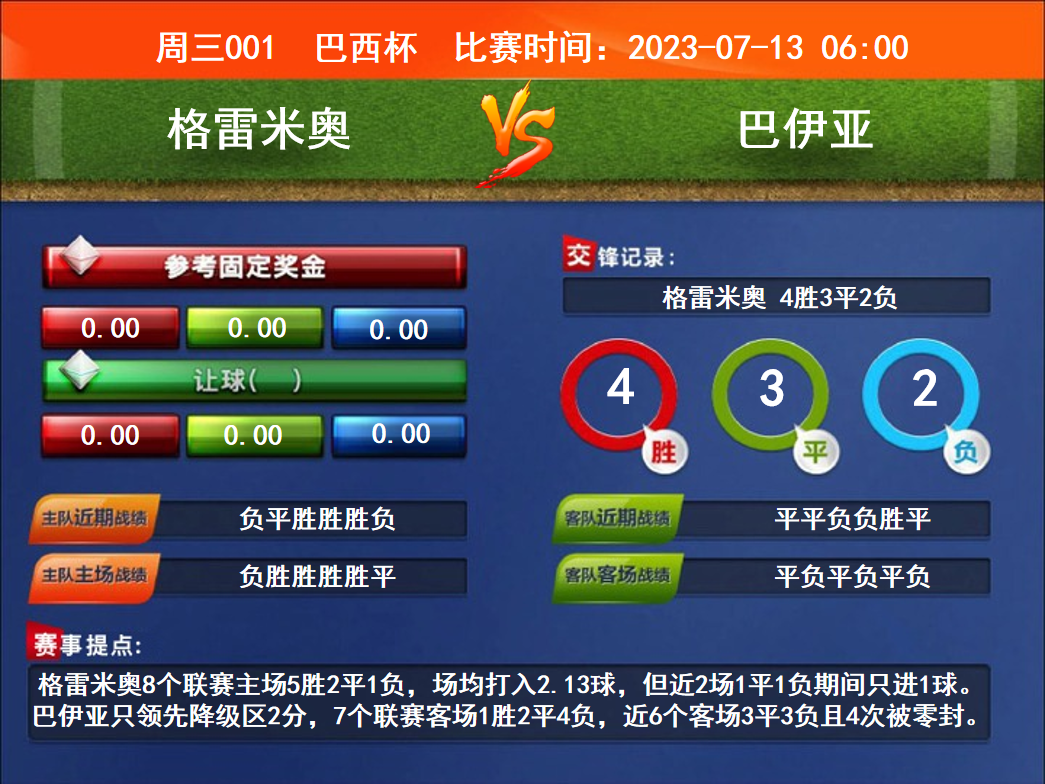 周三競彩足球強(qiáng)檔:格雷米奧勝率不俗 圣何塞5戰(zhàn)不勝……[詳細(xì)]