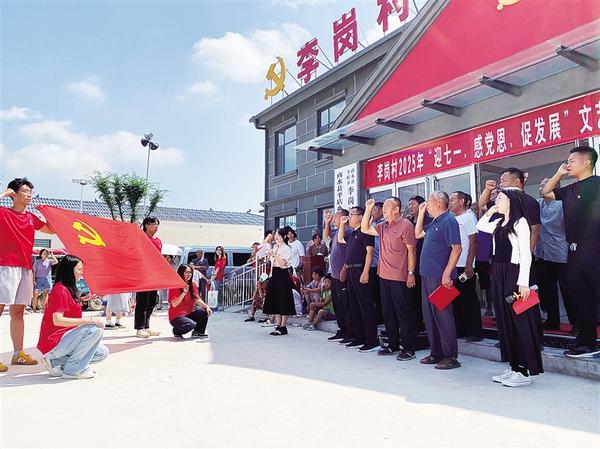 日前,黨員干部面向黨旗重溫入黨誓詞。商水縣平店鄉(xiāng)李崗村黨支部通過舉辦一場文藝匯演、共上一堂黨課、表彰一批優(yōu)秀黨員、重溫一次入黨誓詞等活動,慶祝中國共產(chǎn)黨成立104周年。